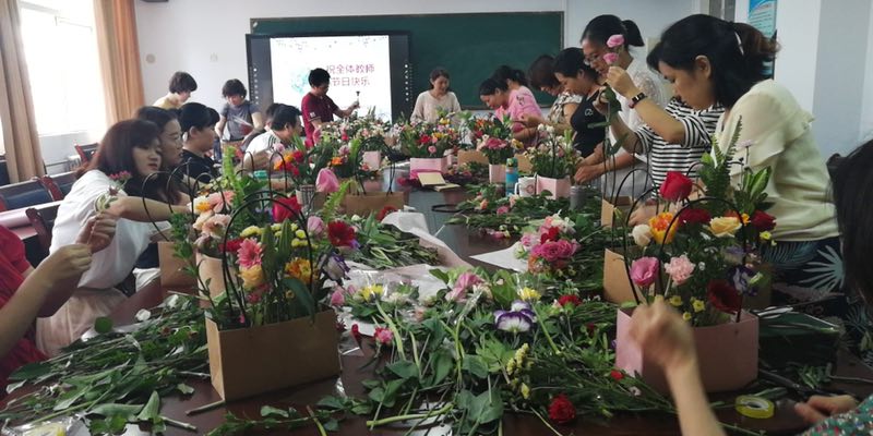 晨曦细雨育桃李,金秋硕果慰园丁。为了庆祝一年一度的教师节,丰富教师们的文化生活,陶冶情操,数学与信息科学公司于9月10日下午在A03会议室举办感恩教师节插花活动。