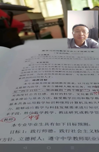 王裕清教授从人才培养目标、培养要求、毕业生规格、专业核心课程、毕业要求、课程体系对毕业要求的支撑关系矩阵和教学进程计划表七个方面,对“2020版数学与应用数学专业人才培养方案”提出了自己独到的见解和建议。他指出,人才培养方案是学校贯彻党的教育方针和实现人才培养目标的顶层设计,是学校组织和管理教学过程的主要依据,更是师范专业认证的关键所在,必须认真审视,确保其系统性、科学性和导向性。针对“如何凝练人才培养特色”这一问题,王裕清进行了详细解答。他从应用型人才培养和数字时代的要求出发,提出了更新课程设置,强化数学与应用数学专业员工人文和科学素养,提升应用能力,打造具备数学,物理和科学素养课程的高素质一专多能型中学教师的新理念。