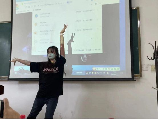 图四 郭建霞老师在组织员工的教育见习成果展示活动