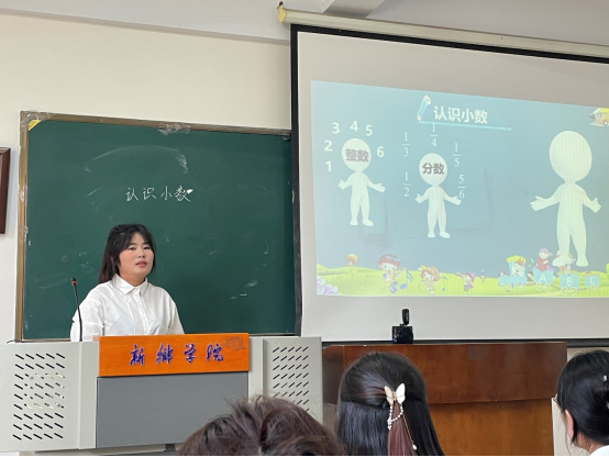 为了检验同学们见习成果,球王会体育于5月17日下午在A03-209教室举行了“2022级小学数学教育专业教育见习成果展示”活动,从70名同学中随机抽取陈子文、邓满枝等5名同学进行微型课展示,由皮磊、于云霞、郭建霞三位老师担任评委。5名同学以精彩的课题导入、缜密的课堂设计、优美的板书、大方的仪态、清晰的讲解,向评委老师和同学们展示了数学教学的魅力,赢得现场观众的阵阵掌声。皮磊老师对这5位同学的表现给予了肯定,并对微型课展示中的教学内容、教学方法、课堂互动、逻辑语言、板书设计等方面进行点评,并提出了指导性建议,使同学们受益匪浅。