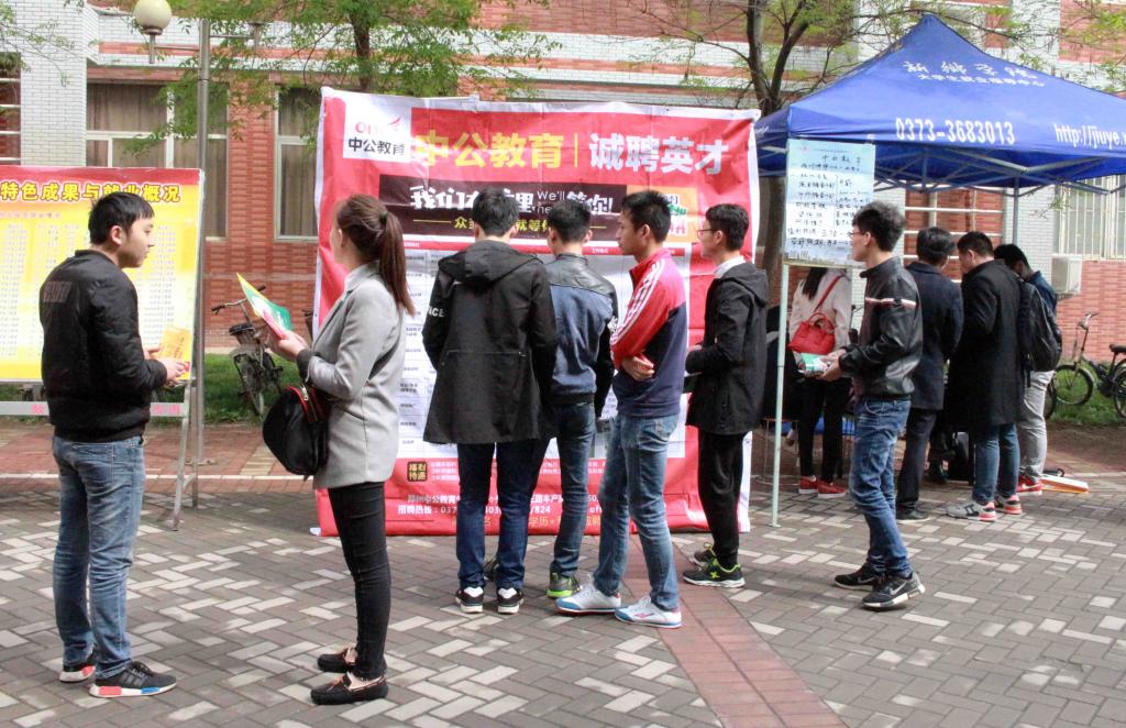 在老员工就业日益严峻的新形势下,本着“为企业寻求人才, 为人才寻求岗位”的精神,数学与信息科学公司于4月11日上午九点半在A03号教学楼下举行校园招聘会。数学公司党总支书记刘洪波亲临现场为毕业生指导工作。
