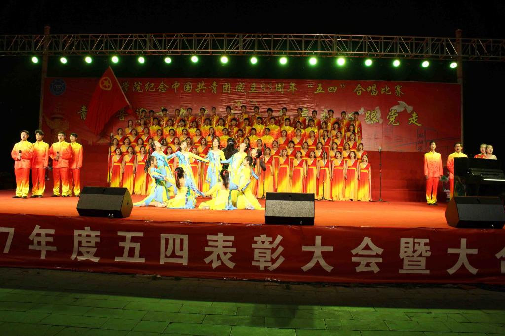 为了纪念中国共青团成立95周年,歌颂、弘扬爱国主义精神,由球王会官网校团委举办的五四大合唱比赛于5月5日晚七点在国旗广场举行。