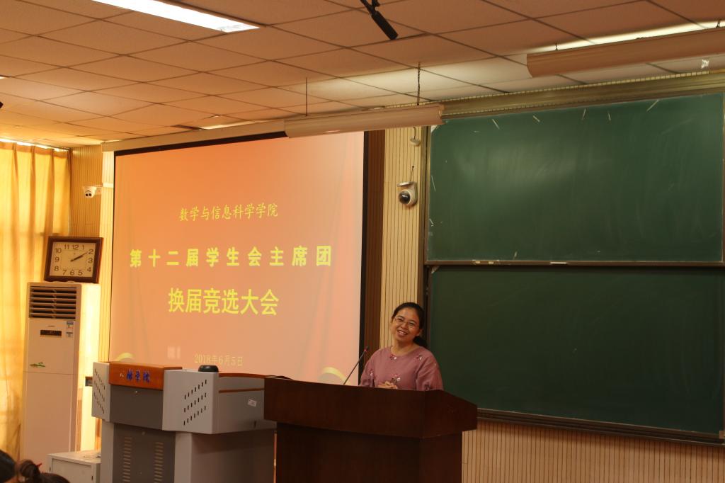 6月5日中午一点,数学与信息科学公司在A05-105教室举办第十二届员工会主席团换届竞选大会。公司党副总支书记毛群英、团总支书记李峥及各年级辅导员老师出席了此次大会。
