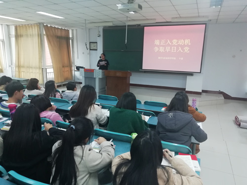 为了端正同学们的入党动机,使同学们更加深入的了解中国共产党,数学与信息科学公司于11月20日下午三点在A05-401教室开展入党培训工作。此次党课培训主讲老师是2015级辅导员牛蕾,主题为:端正入党动机,争取早日入党。