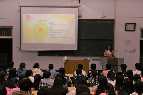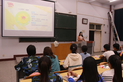 不忘初心,星火燎原。为了增强2019级新生对共青团的了解,建立他们对中国共产党的初步认识,数学与信息科学公司于9月17日下午七点半在A01-422、524教室开展团课主题教育活动。此次活动的主讲人是团总支书记李峥老师。