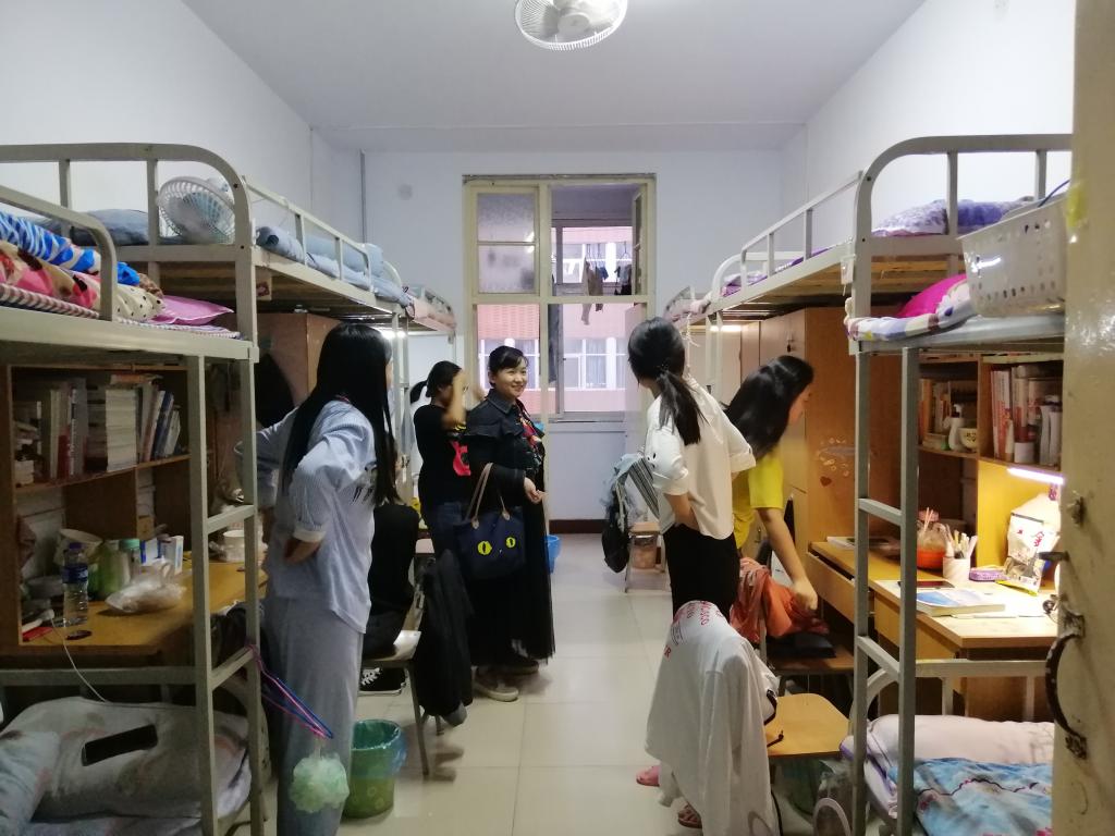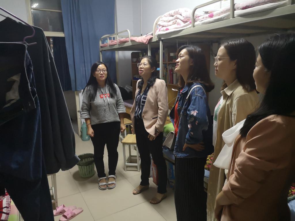 为了加强宿舍文化建设,帮助同学们养成良好的卫生和生活习惯, 2019年9月17日下午5:30,数学与信息科学公司党总支副书记毛群英、团总支书记李峥、2016级辅导员王琳莉、2017级辅导员马晨晖及2019级辅导员张如梦一同走访了员工宿舍,对宿舍内务卫生进行了检查。